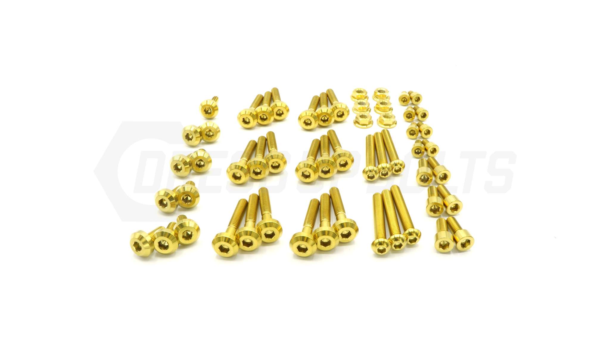 This 54 piece kit includes bolts, screws, nuts, and washers manufactured from extremely durable, anticorrosive, and lightweight GR5 titanium metal.