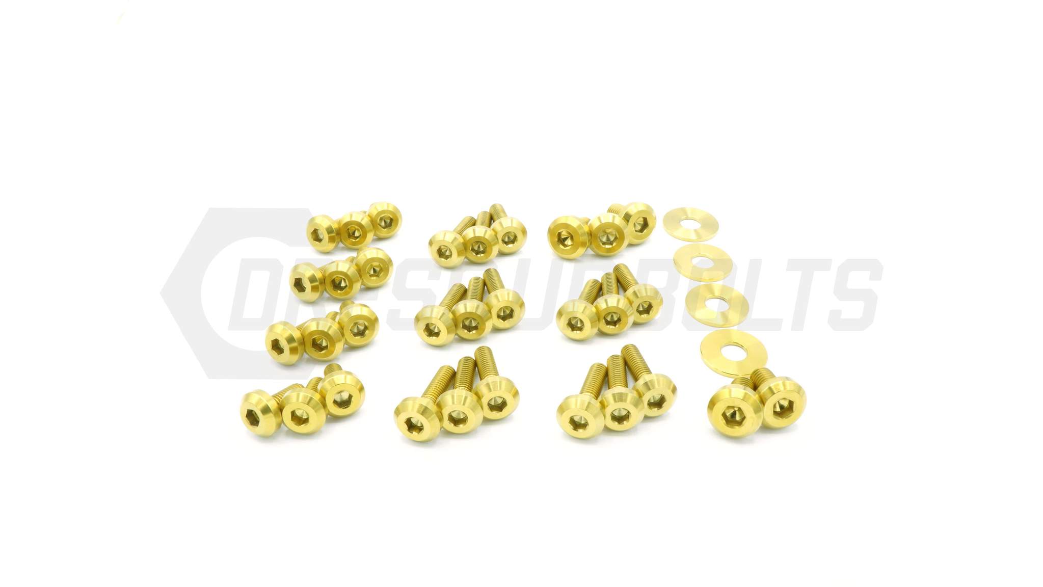 This 36 piece kit includes bolts, nuts, and washers manufactured from extremely durable, anticorrosive, and lightweight GR5 titanium metal. The kit will replace your current hardware installed in the following locations: