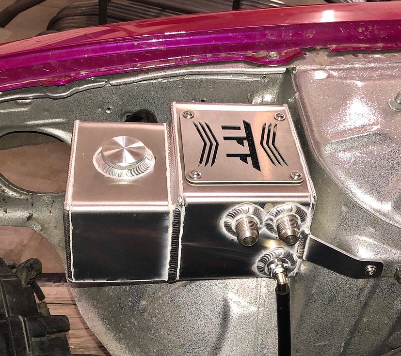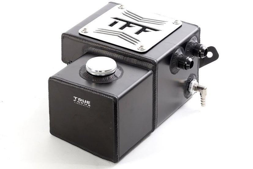 Clean up the look of your engine bay and increase your engines performance with a True Focus Fabrication Combo Can! This tank bolts directly to factory mounting points and features dual internal baffles with stainless mesh for superior oil separation, as well as a quick drain plug that requires no tools.